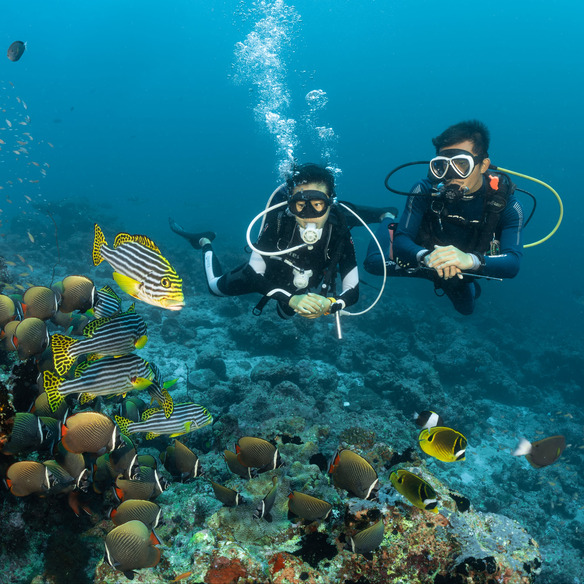 A Bandos Maldives ideális hely a búvárkodásra és snorkelingre: a ház zátonya könnyen elérhető, kezdők és tapasztalt búvárok számára is megfelelő. A resort PADI‑tanúsítványos búvárközponttal rendelkezik, ahol kurzusok és vezetett merülések érhetők el. A Maldív-szigetek legrégebbi búvárközpontjaként a Dive Bandos elkötelezett csapata örömmel mutatja be a vendégeknek a régió 40 legjobb búvárhelyét.