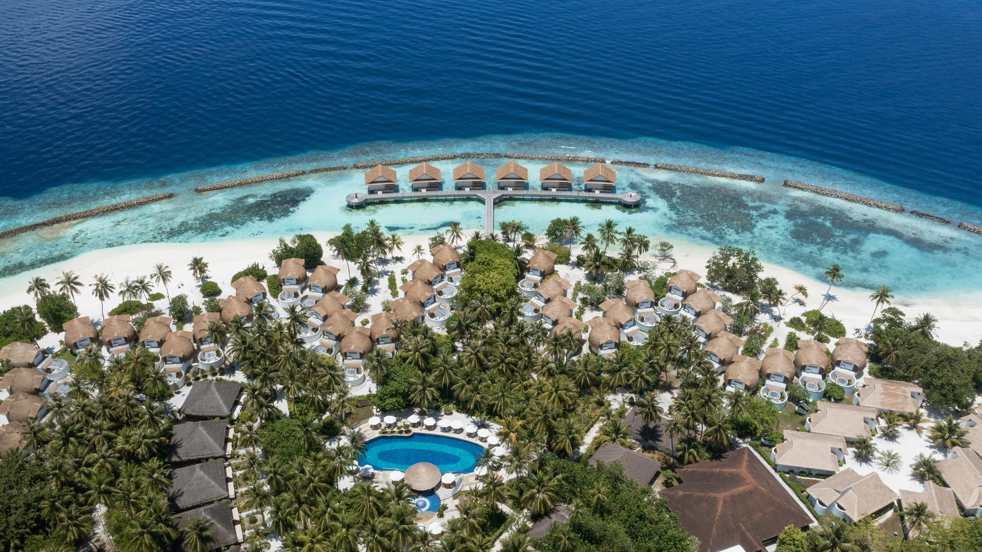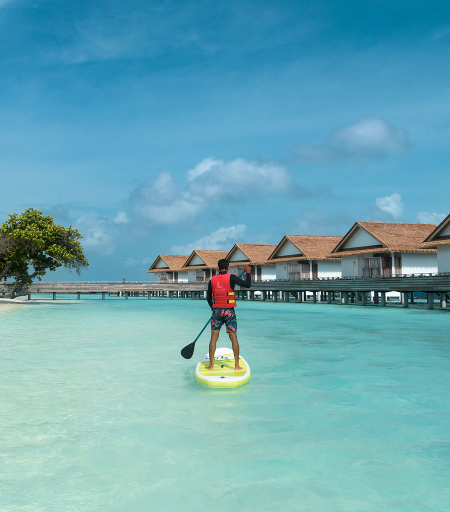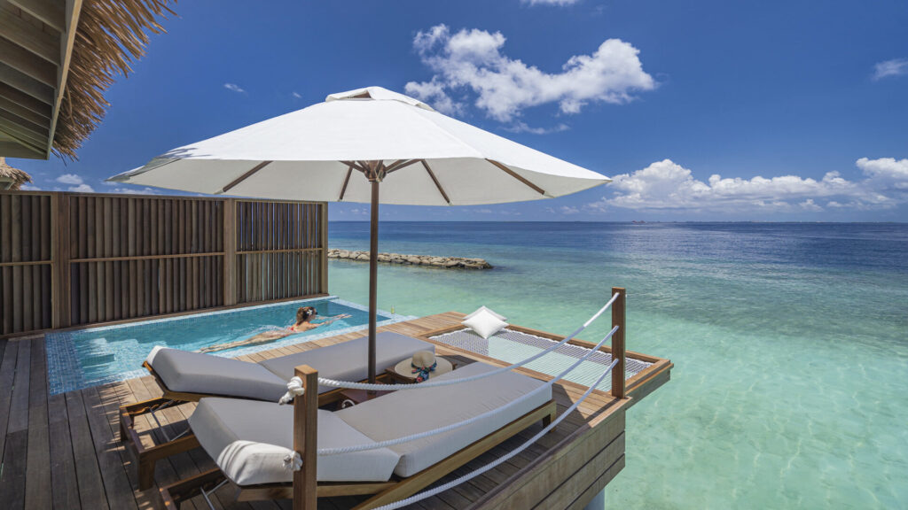 SUNSET WATER VILLA WITH POOLA resort legexkluzívabb kategóriája, közvetlenül a lagúna felett, saját medencével és panorámás naplemente-kilátással.