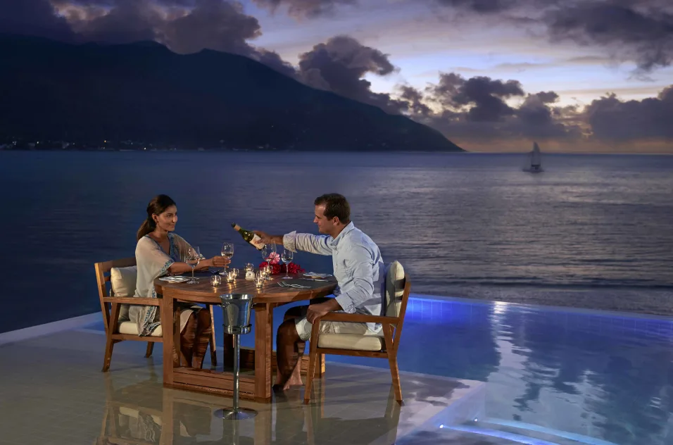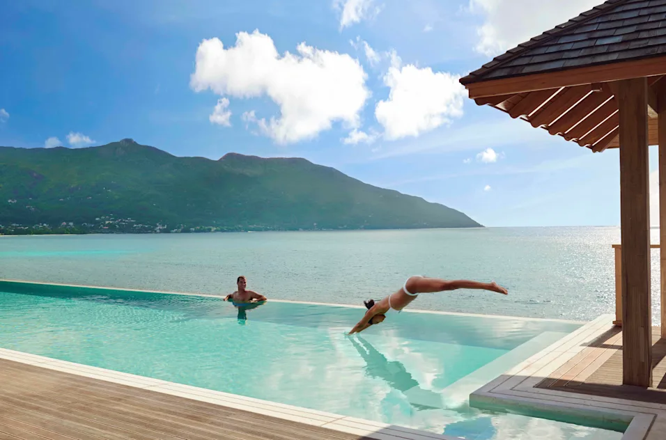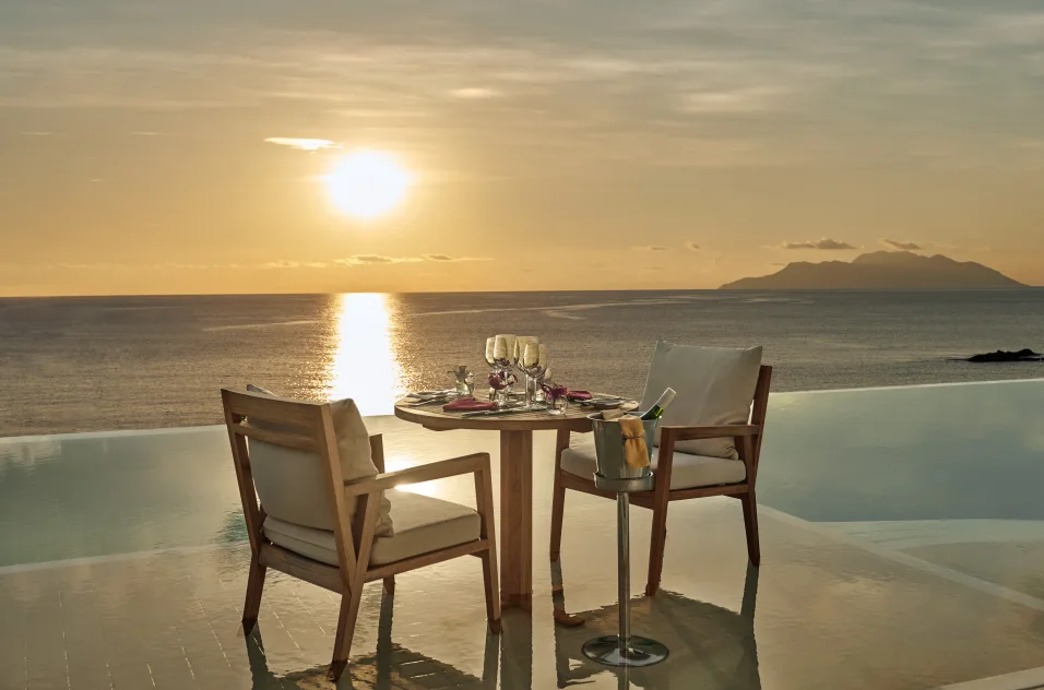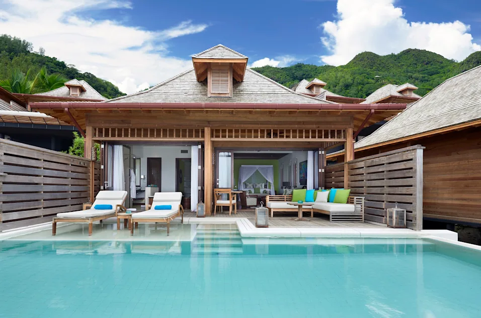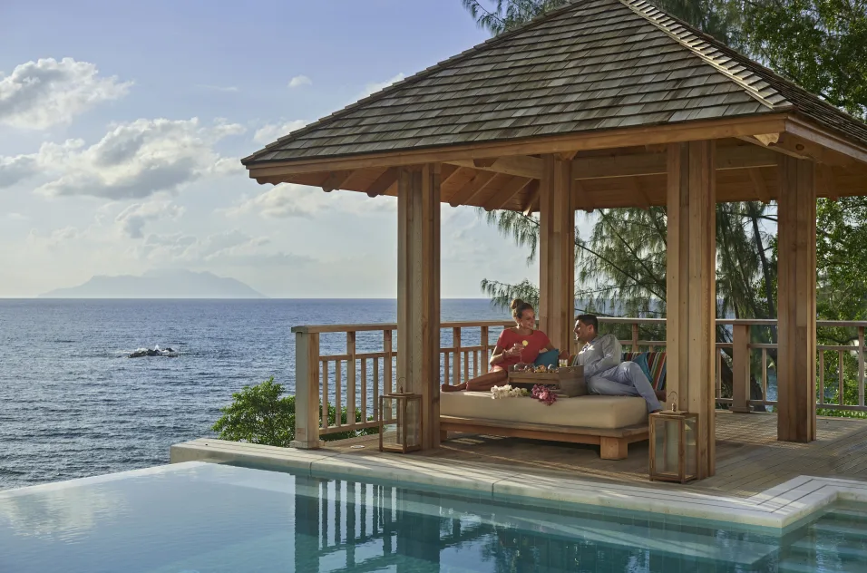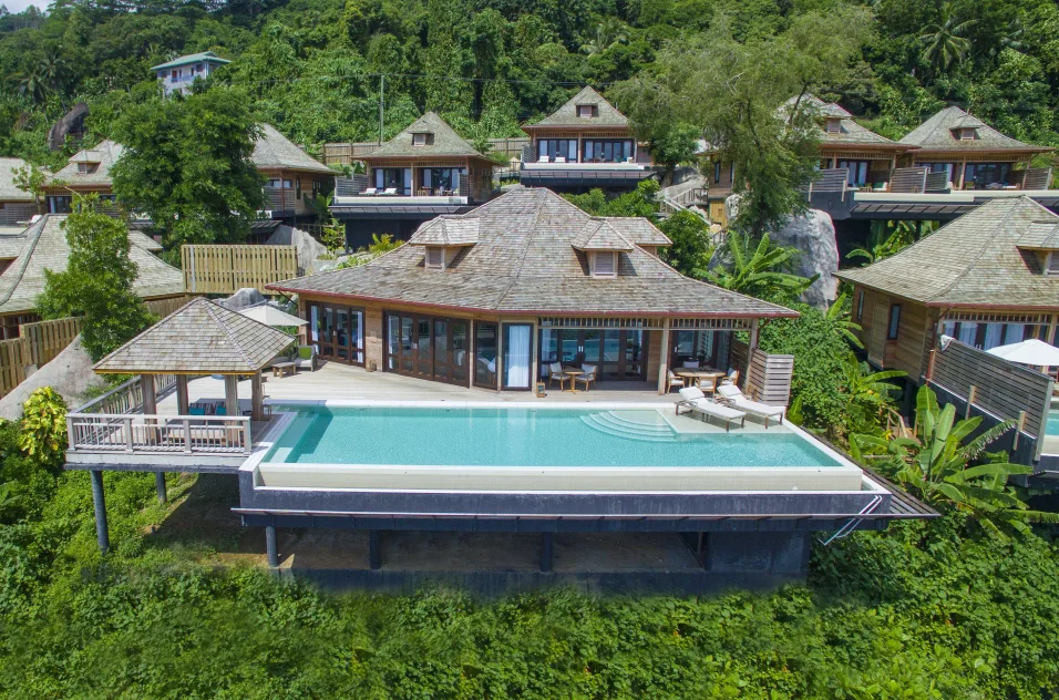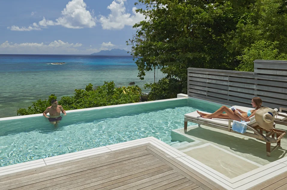 TWO BEDROOM NORTHOLME POOL VILLANagy elnöki villa kilátással az Indiai-óceánra és Silhouette-szigetre.