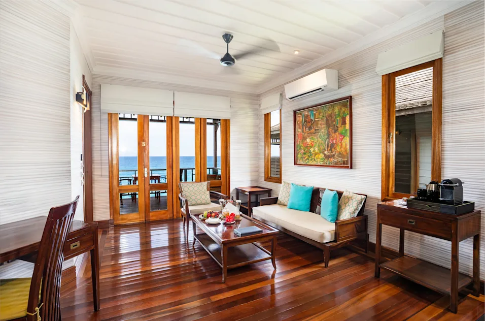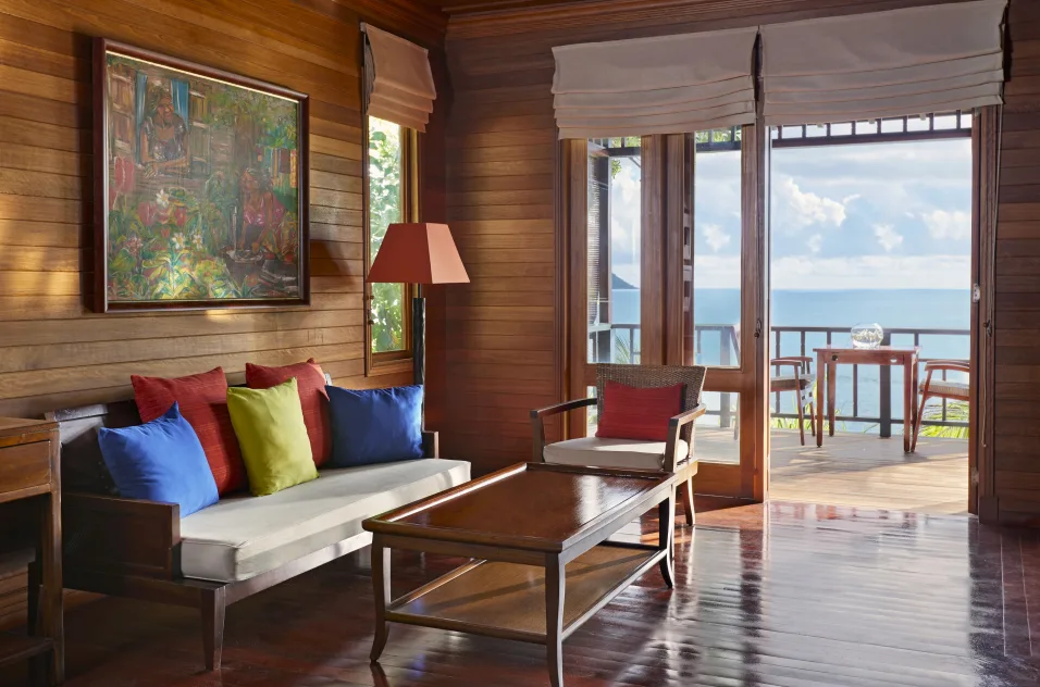 A 56 villa a seychelle-i építészet hatását követi: fényes fa burkolat, üvegajtós francia ajtók, eredeti műalkotások és élénk lime zöld vagy cseresznyepiros kiegészítők. Öt típus közül választhatsz, a hegyoldalon található tágas King Ocean View Villáktól a tengerpart közvetlen közelében lévő King Premium Villákig, valamint nagyobb, saját medencével rendelkező villákig. Nászutasoknak a Grand Ocean View Villa a legjobb választás, saját infinity medencével, kilátással az Indiai-óceánra és Silhouette-szigetre.