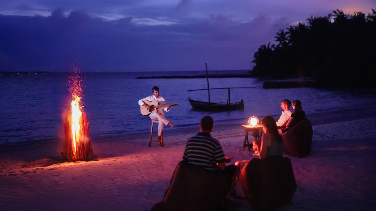 Kiemelt programunk: Heti rendszerességgel strandtűz est vár a csillagok alatt, időjárástól függően, babzsákokkal a tűz körül és helyi maldív énekessel.