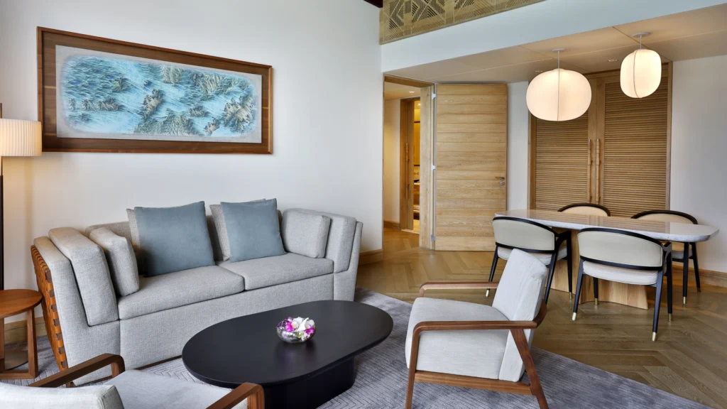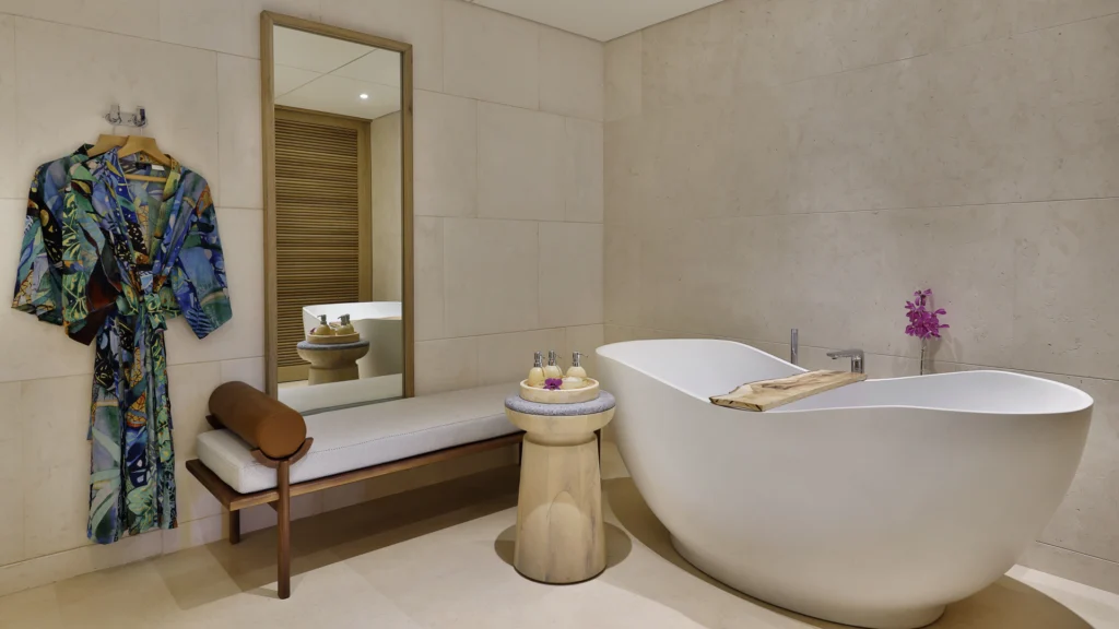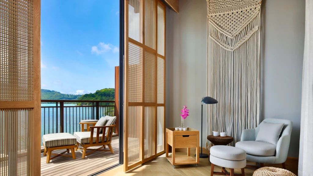Az összes 41 szoba, lakosztály és villa okosan elhelyezkedik a gazdagon illatozó trópusi kertek között. Tágasak és tökéletesen kialakítottak, minden erkélyről és teraszról látható a tenger. A dekoráció stílusosan semleges – fehér falak, visszafogott textilek és világos fa – így zavartalan hátteret biztosít a pihenéshez. Az 11 szobatípus lehetővé teszi, hogy párok, fiatal családok vagy nagyobb csoportok igényeik szerint válasszanak. A King Premium szobák például ideálisak két fő számára, erkélyükről gyönyörködhetünk a naplementében. A Three Bedroom Bay House Plunge Pool-lal vagy a Three Bedroom Ocean House Pool-lal bőséges beltéri és kültéri teret kínál.
