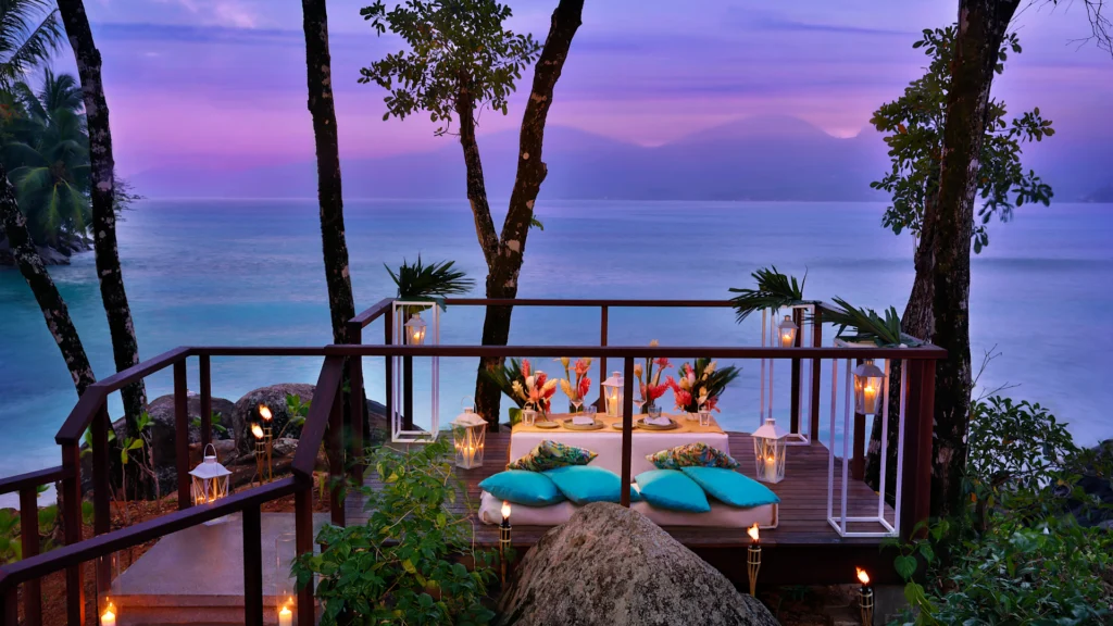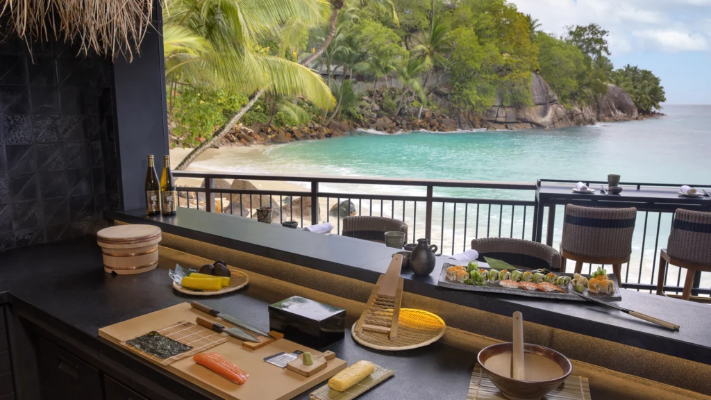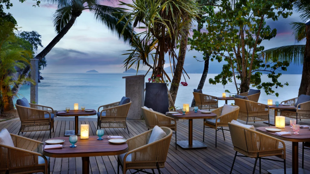 All Inclusive • Reggeli a Muse étteremben • 3 fogásos „dine-around” à la carte ebéd a Soley, Moutya és Muse éttermekben • 3 fogásos „dine-around” à la carte vacsora a Moutya és Muse éttermekben; az Azido étteremben vacsorázóknak SCR 1,650 személyenkénti jóváírás jár, a felette eső összeget külön kell fizetni • Kiválasztott üdítők, helyi sör, poharas házi borok, helyi szeszes italok és válogatott koktélok (11:00–23:00)