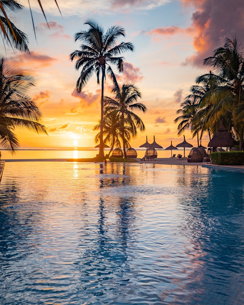 Elegáns, nagy presztízsű tengerparti luxusresort Mauritius egyik legszebb fehér homokos strandján.